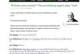 Lee Robinson: Lime Associates is a specialist Purchasing and Supply Consultancy based in the UK and we serve the entire world driving value for all our clients. We work entirely in Med Devices.